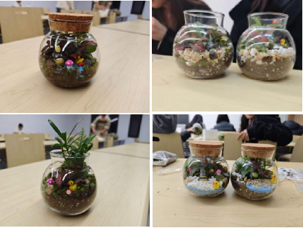 2025级硕士研究生李博同窗暗示:“这是我第一次测验考试微景不雅制做,从填土到制景,每一步都充满了新颖感。看着空瓶子慢慢变成充满朝气的小丛林,满满的成绩豪情不自禁,也让我对天然取手工创做有了更深的热爱。”。